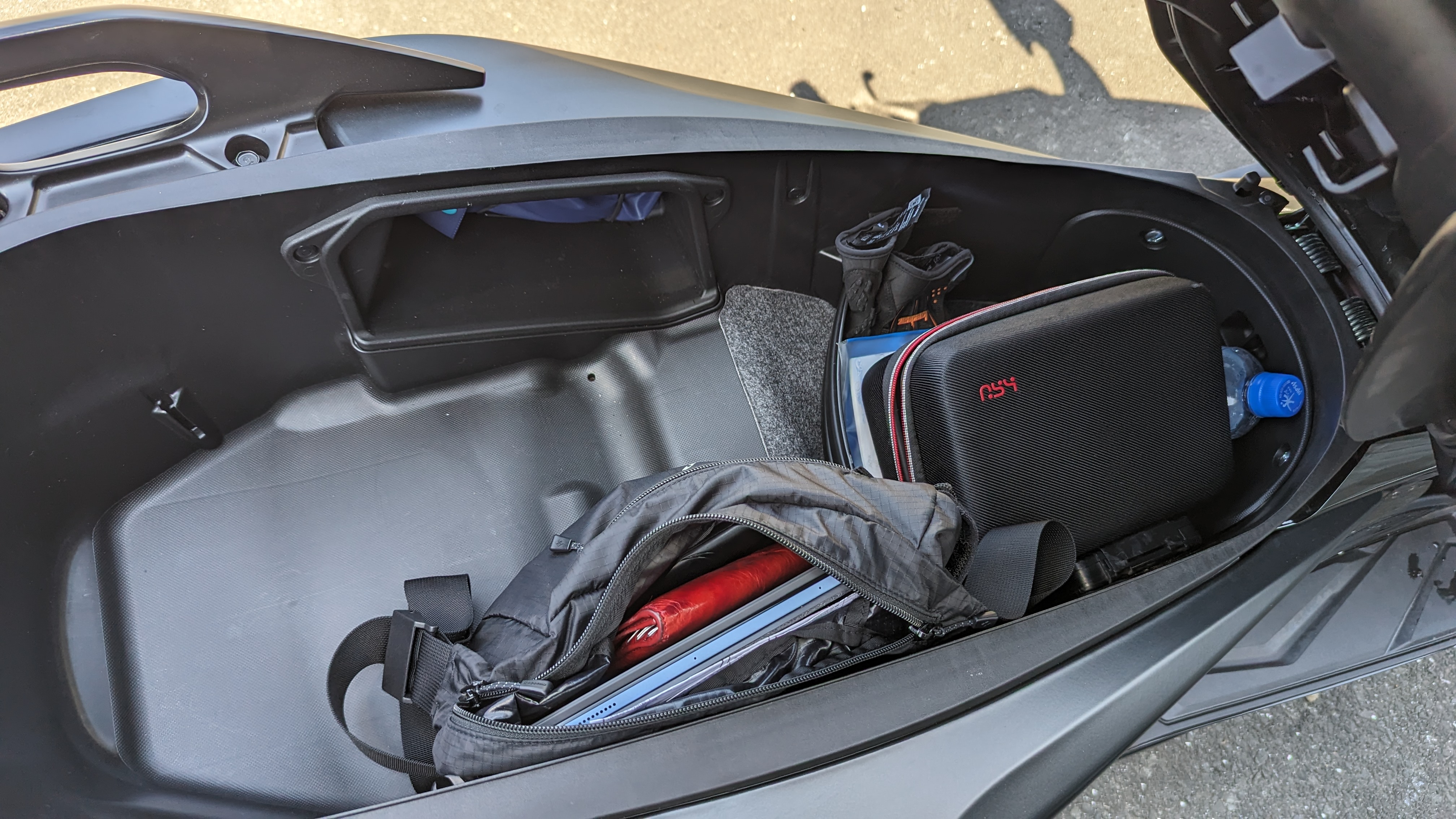 容量自体はFORZAと差がありませんが、同じヘルメットがそのまま立てて入れられたのはFORZA