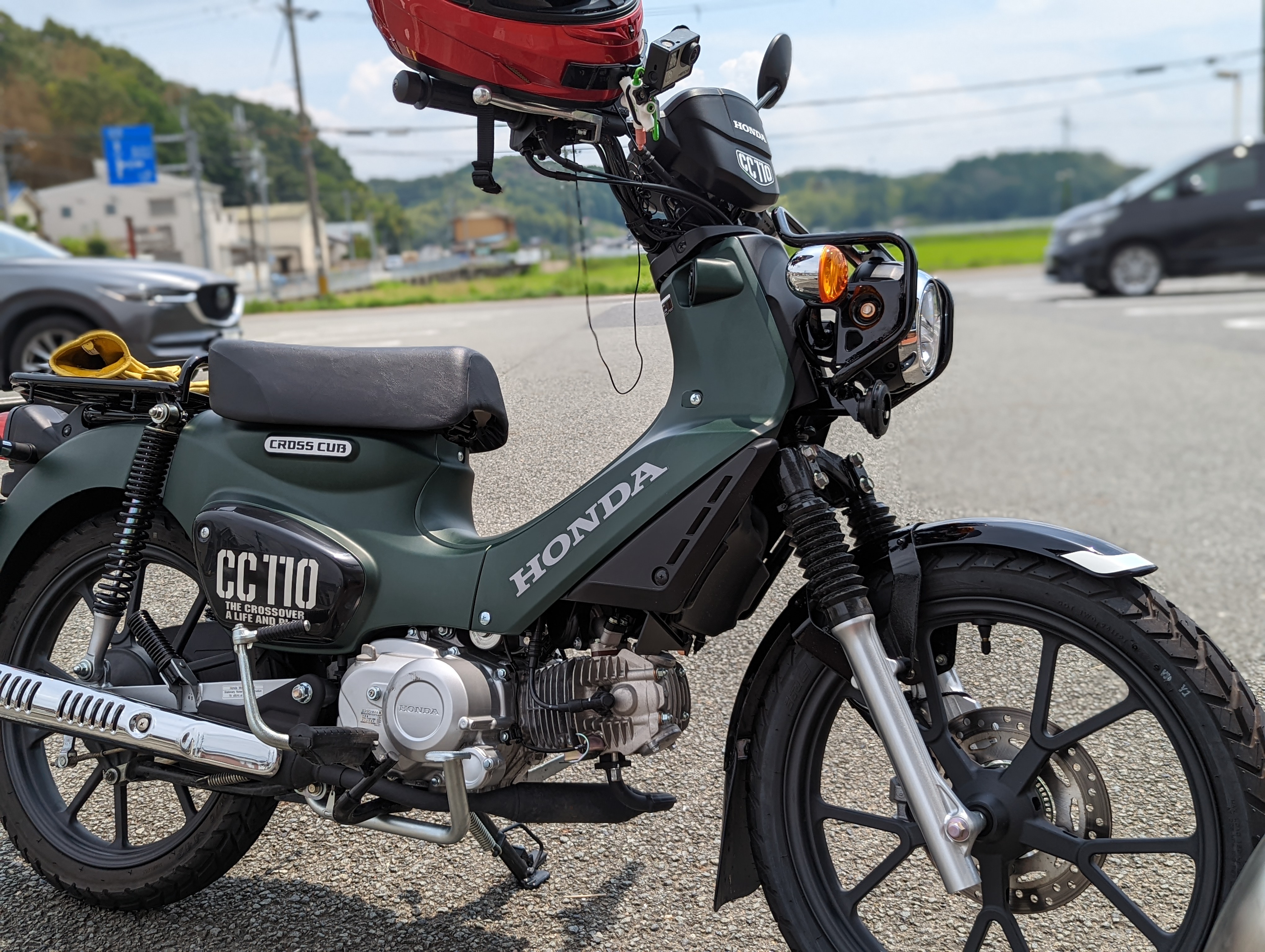 特にDIO110のハンドルはあまりにも軽い。スクーターはそもそもそういったものが多いのだが、それと比べるとちょっとクロスカブ、スーパーカブは重く感じる気もする。
