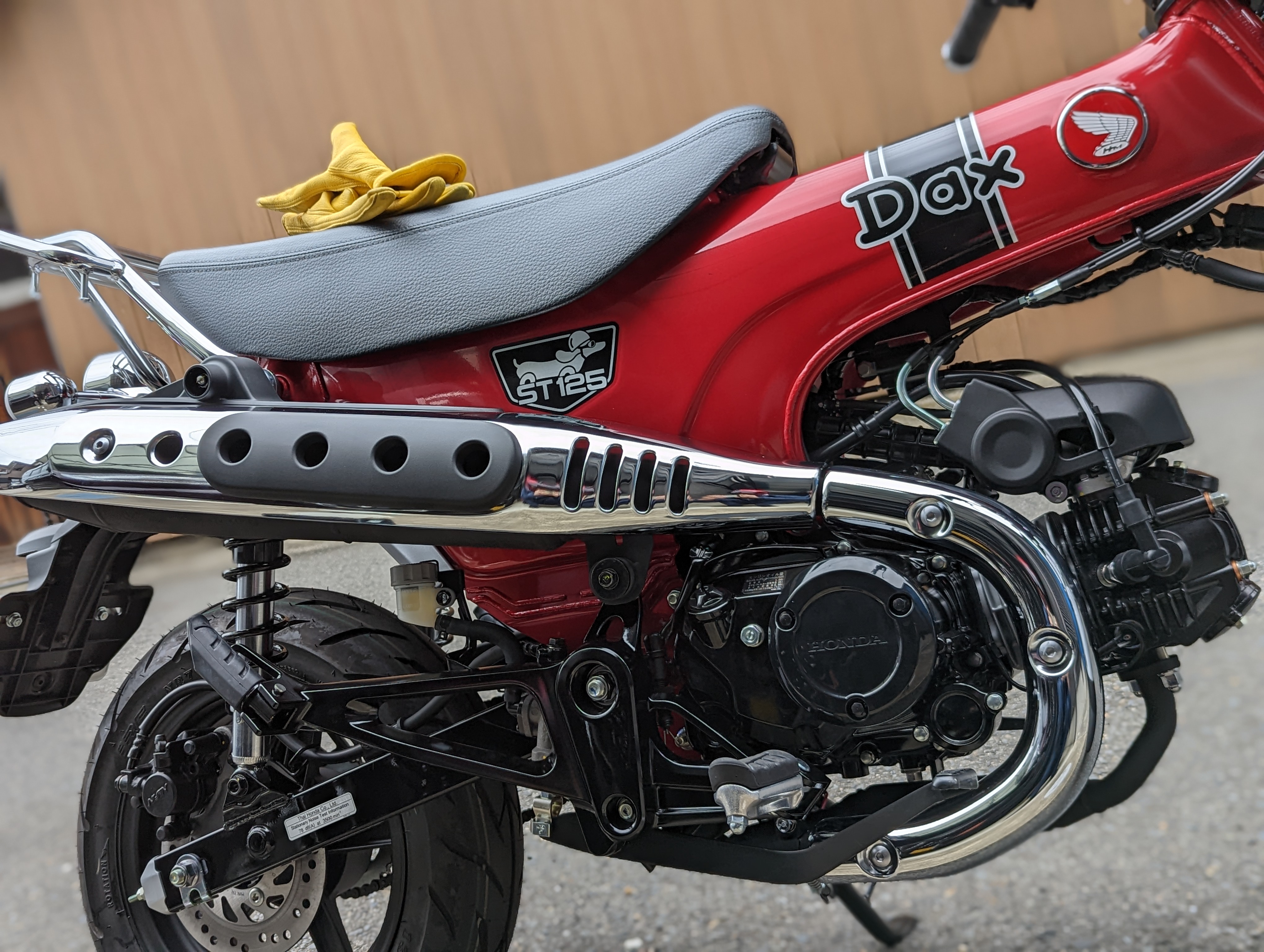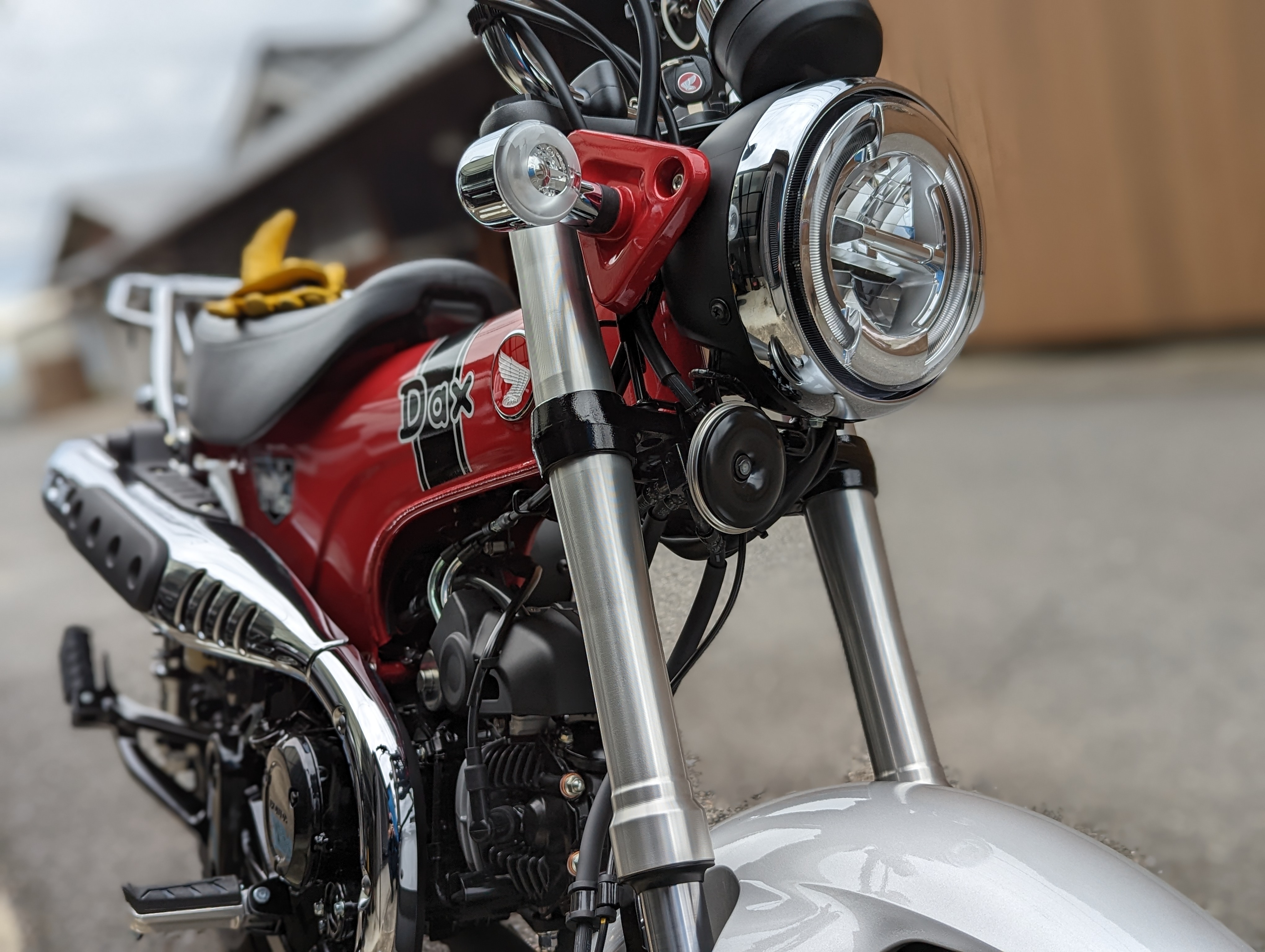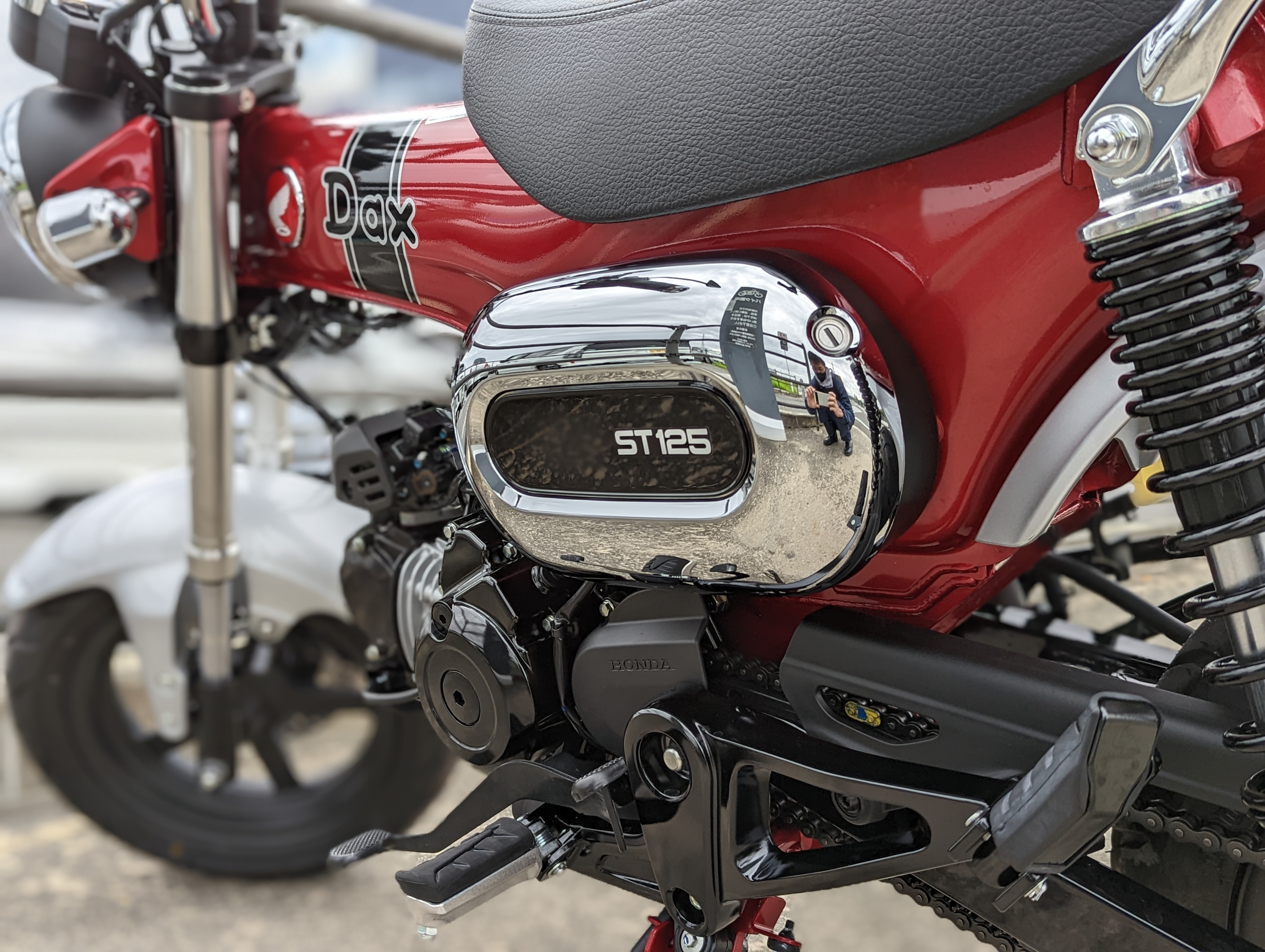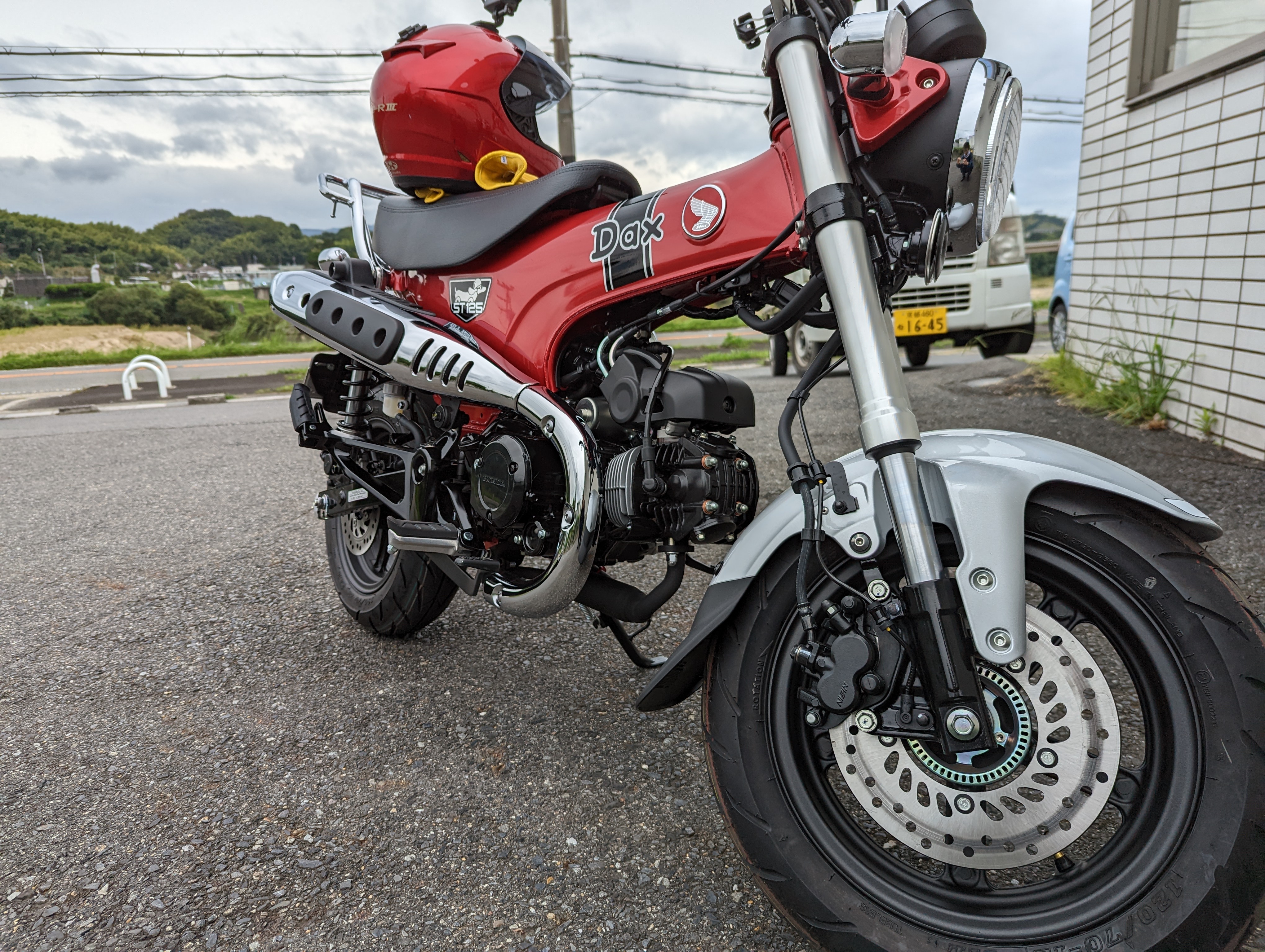 タイヤもDAX125は同系エンジンを搭載しているスーパーカブc125と比べて小さい。
